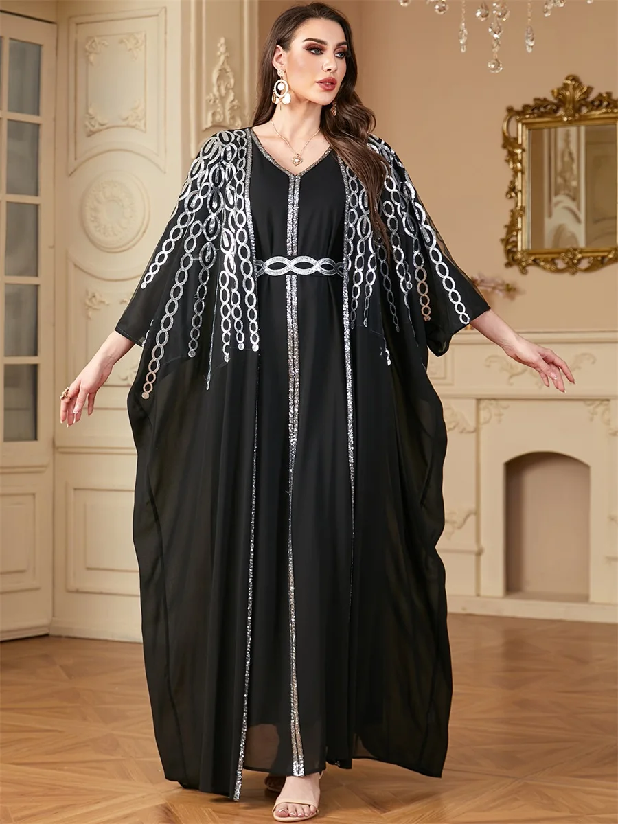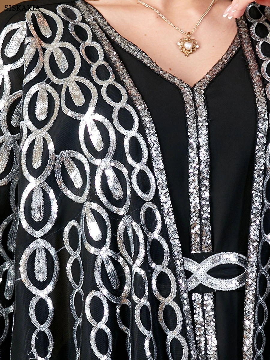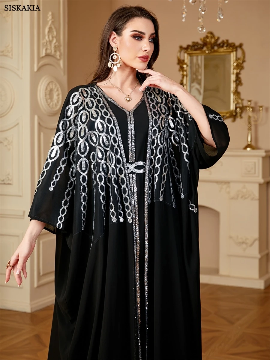Abaya Kaftan Siskakia élégance décontractée tendance Dubaï avec sequins l’éclat chic qui attire tous les regards
