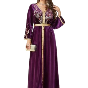 La sensation agréable du velours doux sur la peau vous enveloppe, offrant un maintien confortable qui renforce votre confiance. Vous vous sentirez sublime dans cette abaya velours perles, où le vintage rencontre le chic moderne, tout en restant fidèle à l’héritage marocaine.