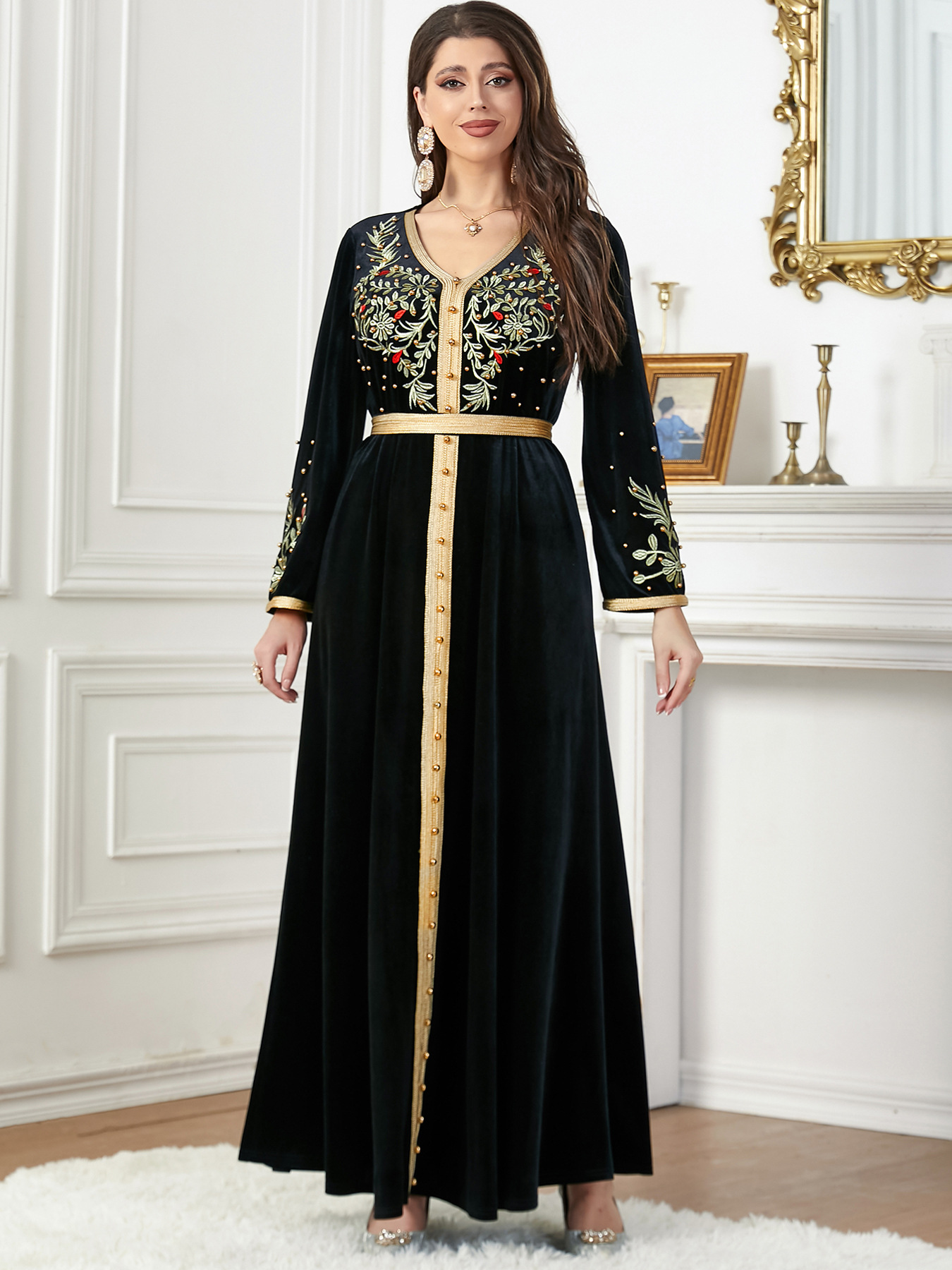 Abaya de soirée en velours perlé imaginez l’entrée qui fait tourner les têtes