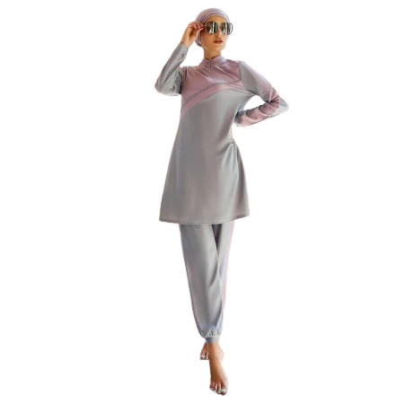 Ce burkini femme se compose d’un ensemble 3 pièces, incluant une tunique longue, un pantalon de bain ajusté non moulant et un hijab de bain assorti. Ce design harmonieux garantit une couvrance totale tout en permettant de rester élégante. Chaque pièce est spécialement conçue pour s’adapter à votre silhouette et à vos mouvements, faisant de chaque instant aquatique un moment de plaisir.