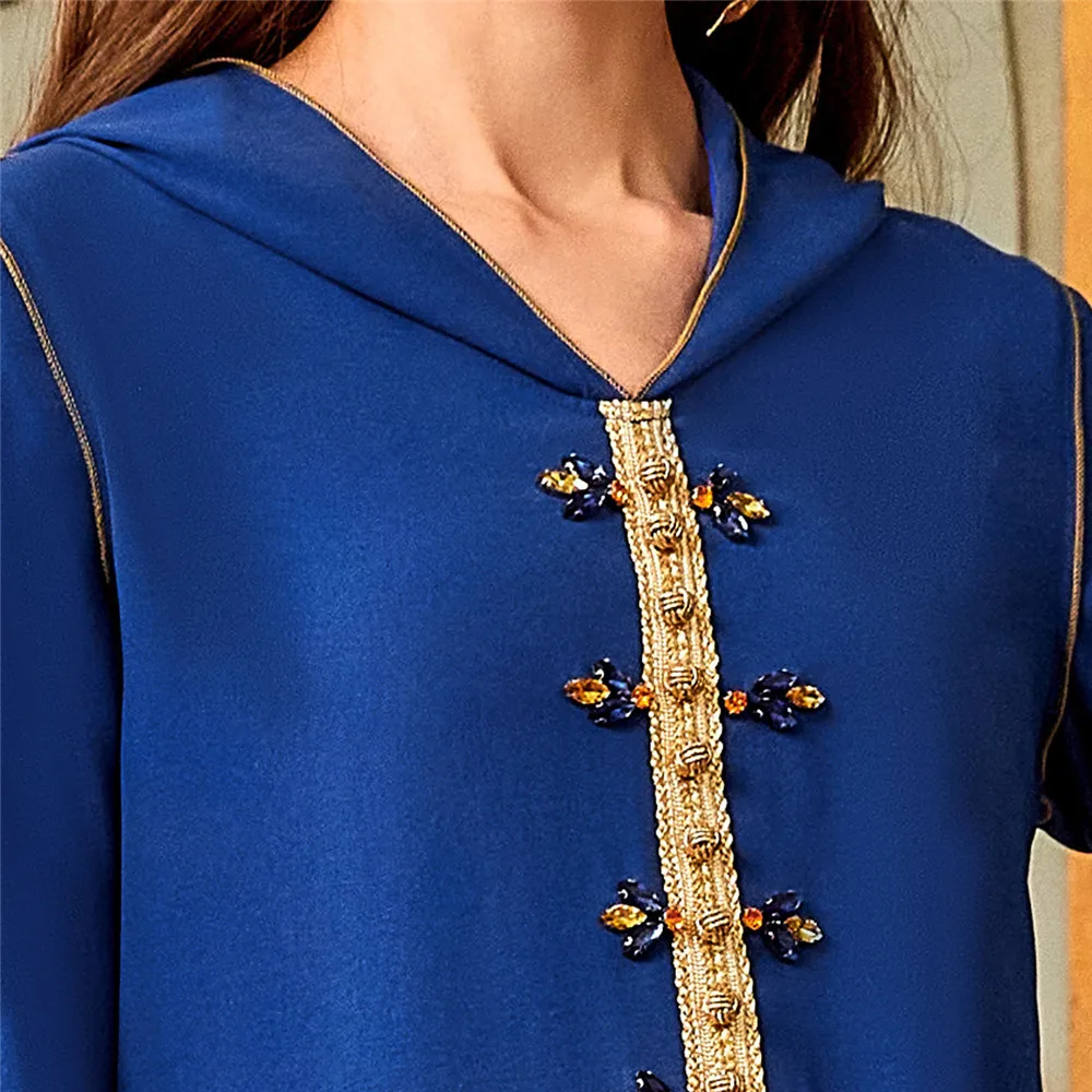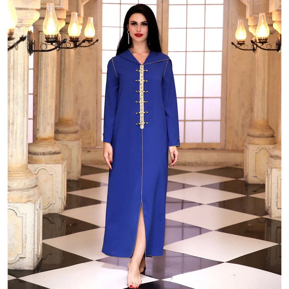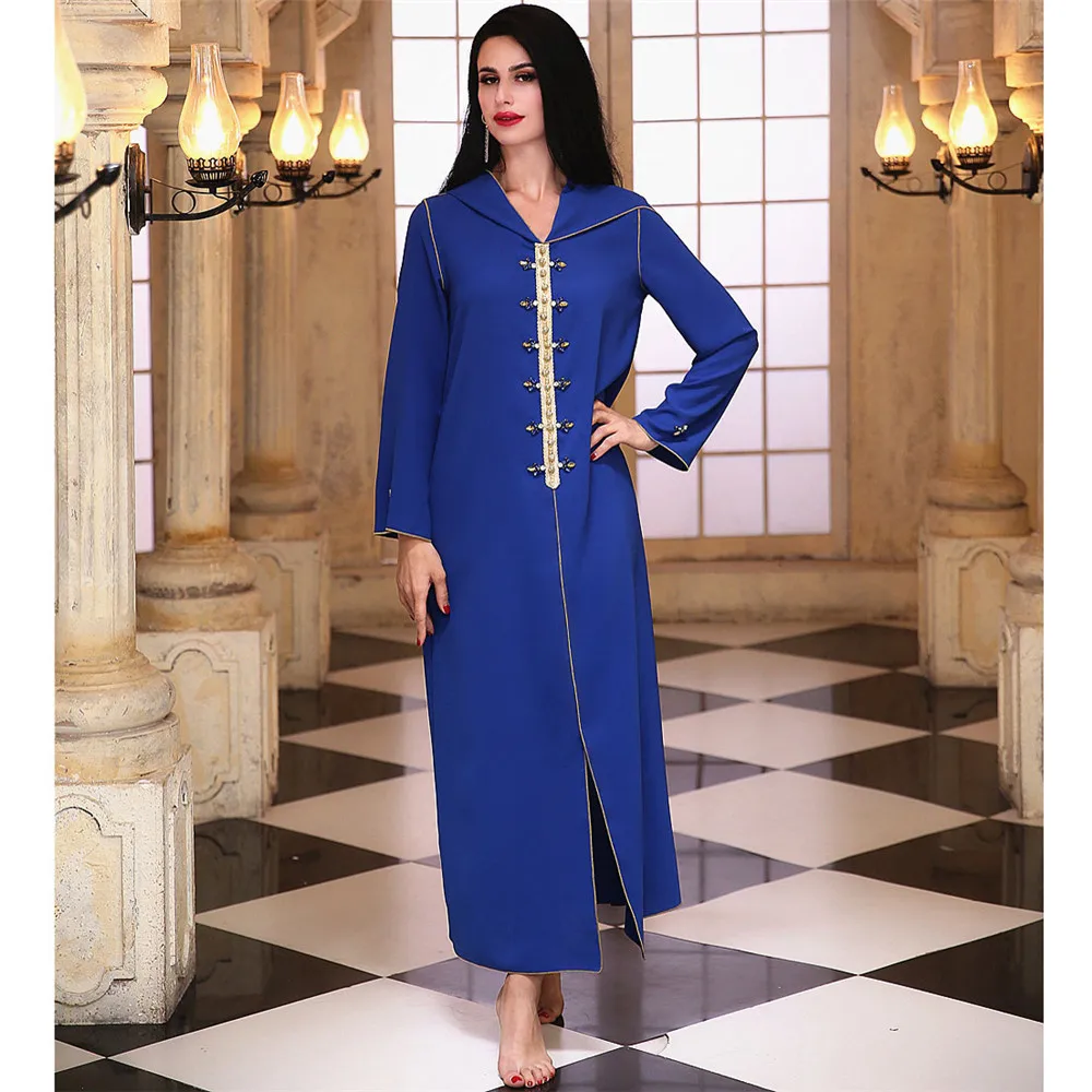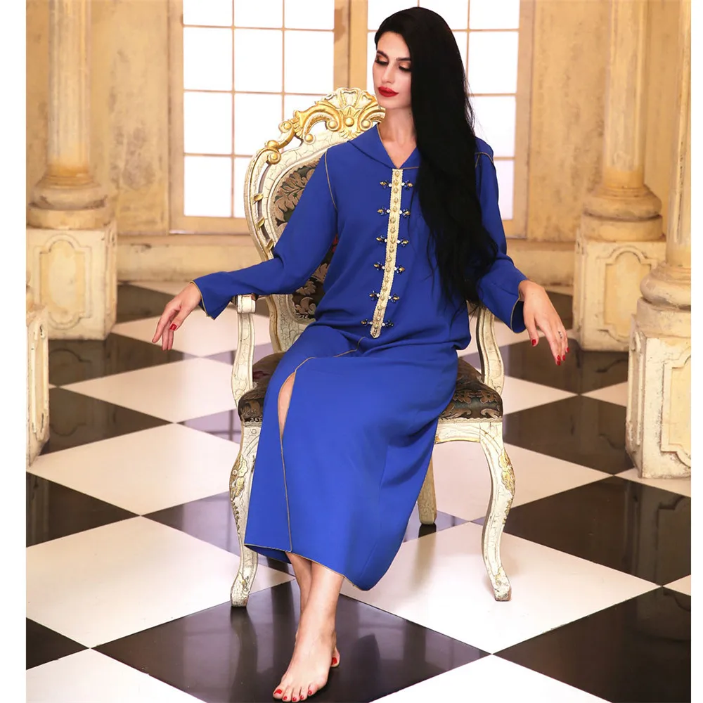 Découvrez la djellaba femme classique à manches longues – bleu, alliant élégance et confort.
