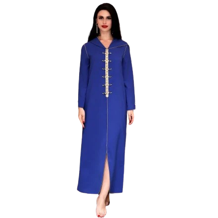 Découvrez notre djellaba femme classique à manches longues dans une somptueuse teinte bleu profond, un allié parfait pour illuminer votre silhouette avec élégance. Conçue pour allier confort et style, cette robe longue chic est l’incarnation de la mode orientale contemporaine, idéale pour toutes les occasions, du quotidien aux événements festifs. Apportez une touche de raffinement à votre garde-robe et laissez-vous séduire par sa coupe ample et régulière qui épouse vos mouvements tout en préservant une allure modeste. Transformez chaque instant en un moment de grâce et de confiance grâce à cette djellaba polyvalente.