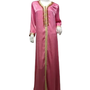 Élégance rose immédiate la Djellaba Classique Femme À Manches Longues En Rose