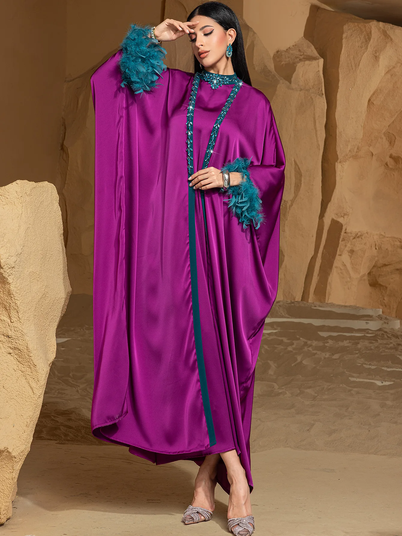 Les détails qui font la différence: finitions soignées et touche scintillante pour capter la lumière sans ostentation. La djellaba avec strass ajoute une touche d’élégance discrète, rendant cette pièce idéale pour toutes les occasions. Dites adieu aux codes vestimentaires classiques et accueillez une forme nouvelle de tenue orientale chic.