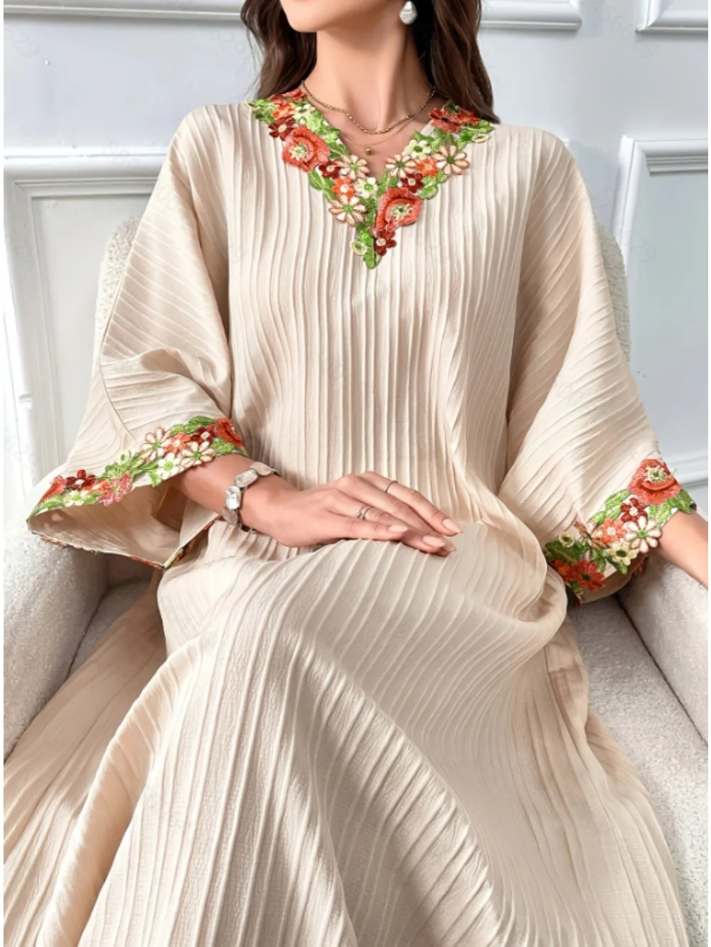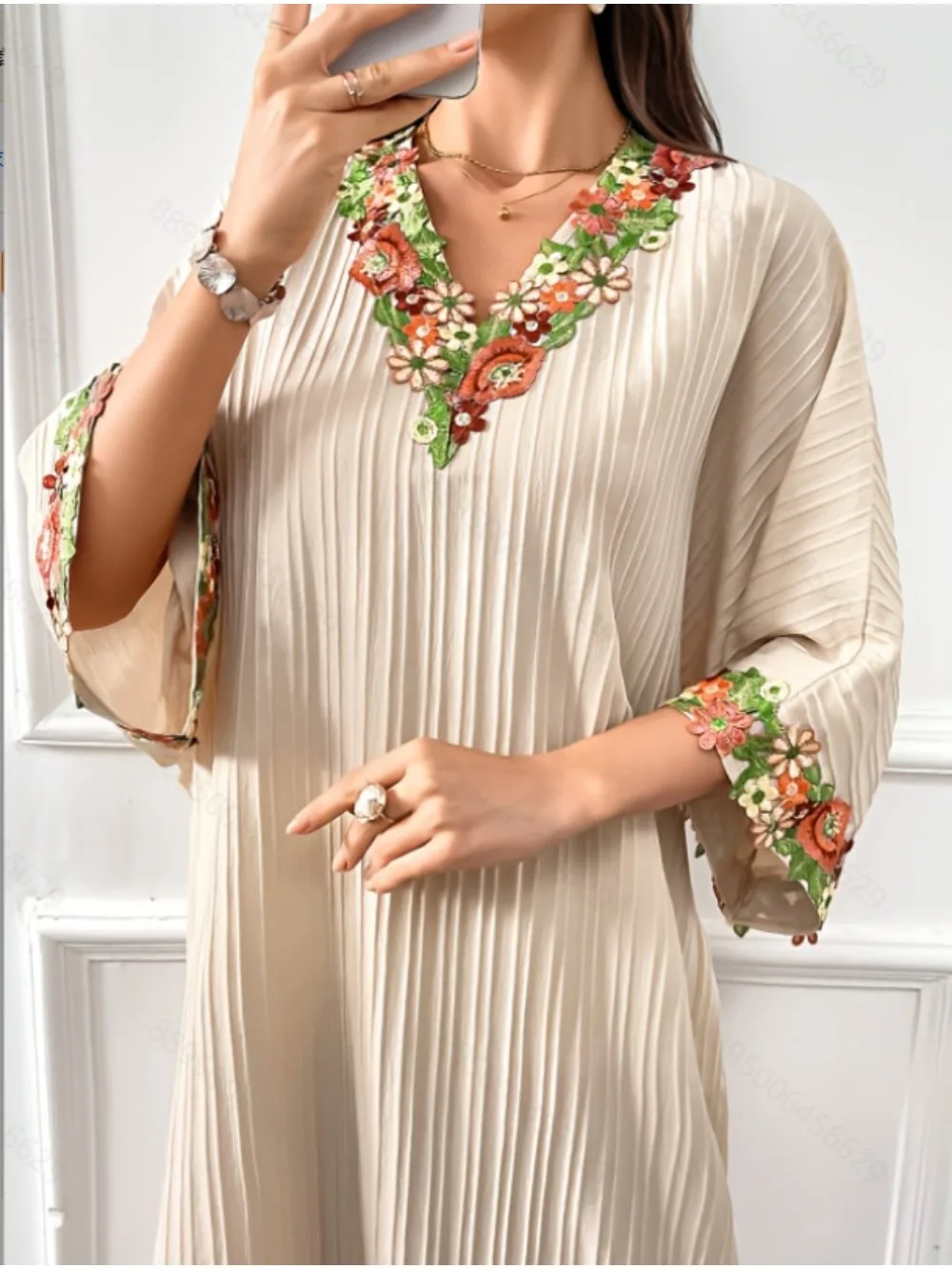 Les détails soignés de cette robe orientale chic font toute la différence. Avec ses finitions nettes et sa matière facile d’entretien, ce caftan dentelle florale s’adapte à votre quotidien tout en vous permettant de vous démarquer lors d’occasions spéciales.
