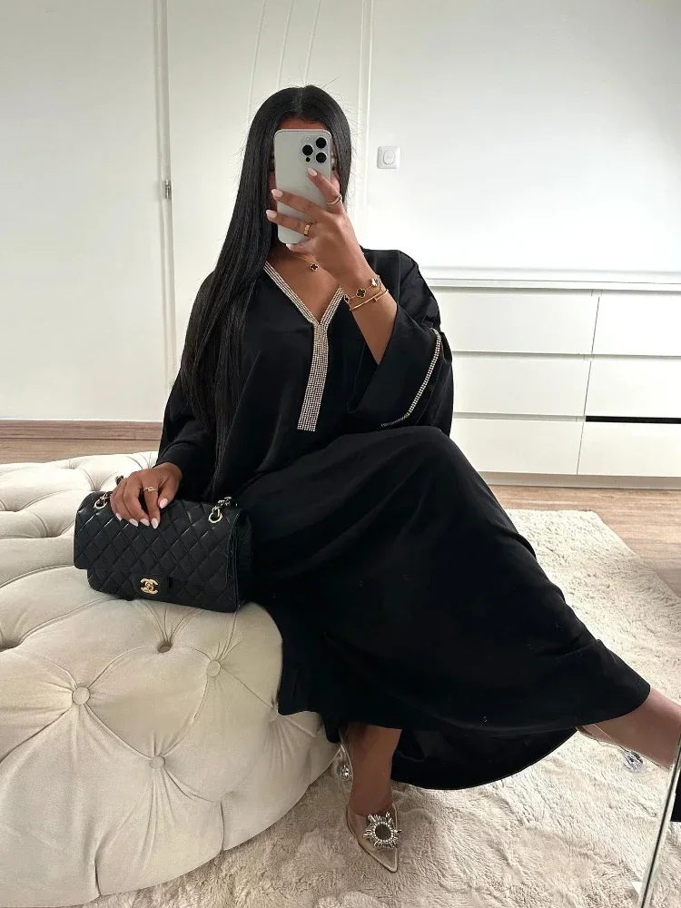 Les détails raffinés font toute la différence. Les strass embellissent cette robe orientale festive, tandis que les finitions soignées assurent un rendu hautement photogénique. Vous serez la plus belle lors de vos événements, en optant pour cette d’élégante djellaba femme chic qui allie modernité et tradition.