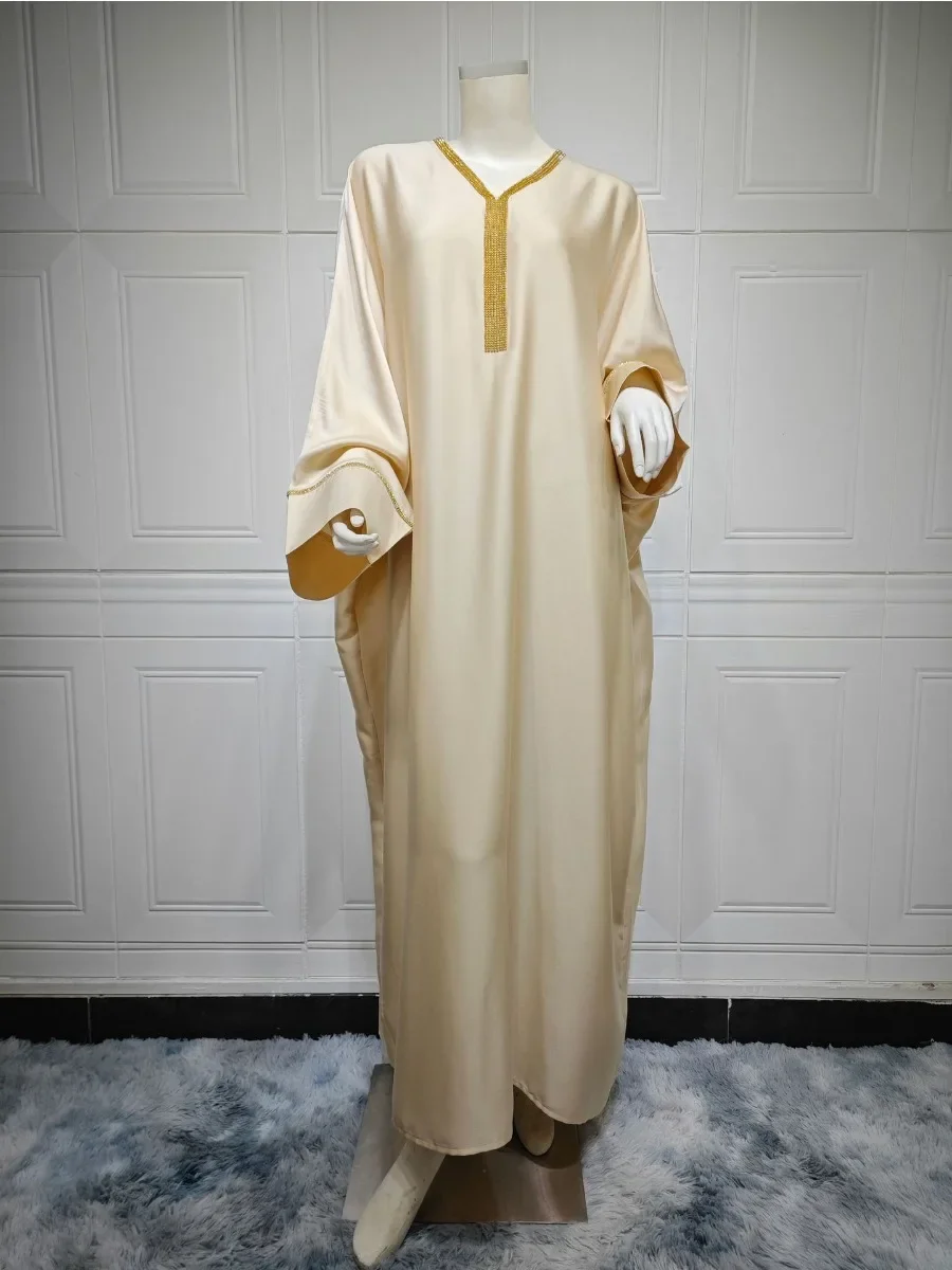 Conçue pour les occasions spéciales, cette djellaba satinée est idéale pour les mariages, soirées ou fêtes familiales. Vous serez à l’aise tout en affichant un style raffiné, sans jamais en faire trop. Cette robe orientale festive est l’alliance parfaite entre élégance et simplicité.