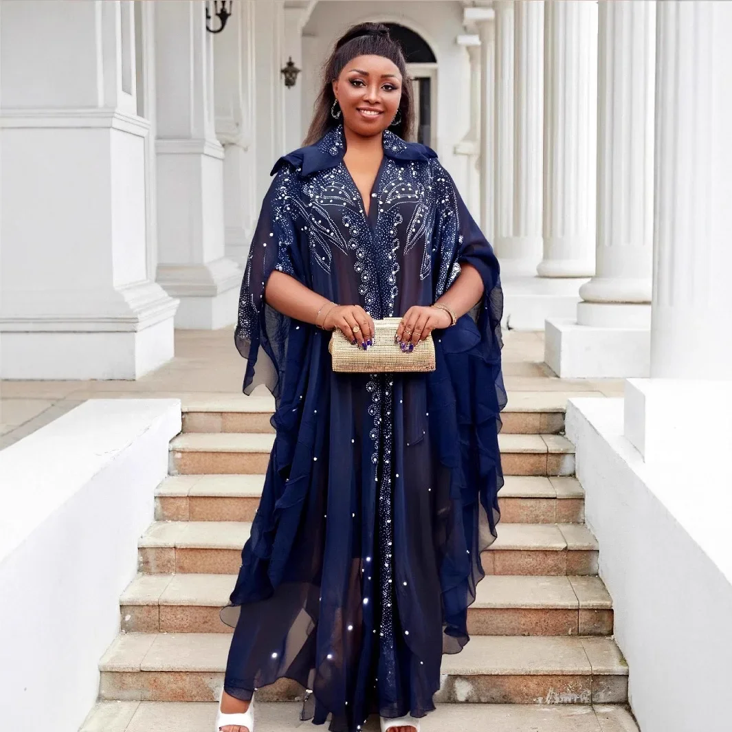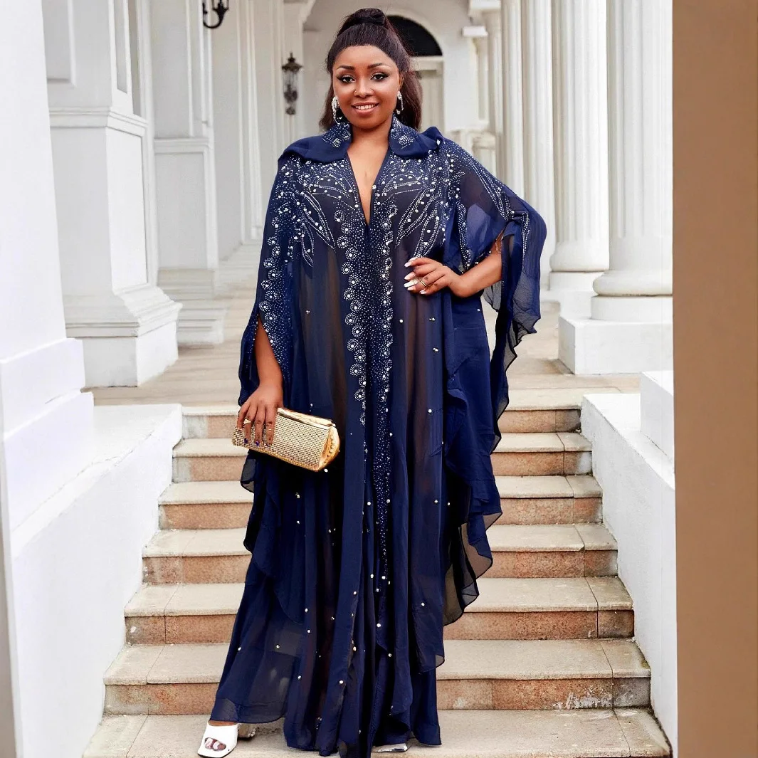 Avec la Djellaba Femme Luxe Caftan Marocain Glamour De Dubaï, vous captez la lumière et attirez tous les regards. Ses strass scintillants façon diamants et sa fluidité royale vous confèrent une présence magnétique dès votre entrée dans la salle.