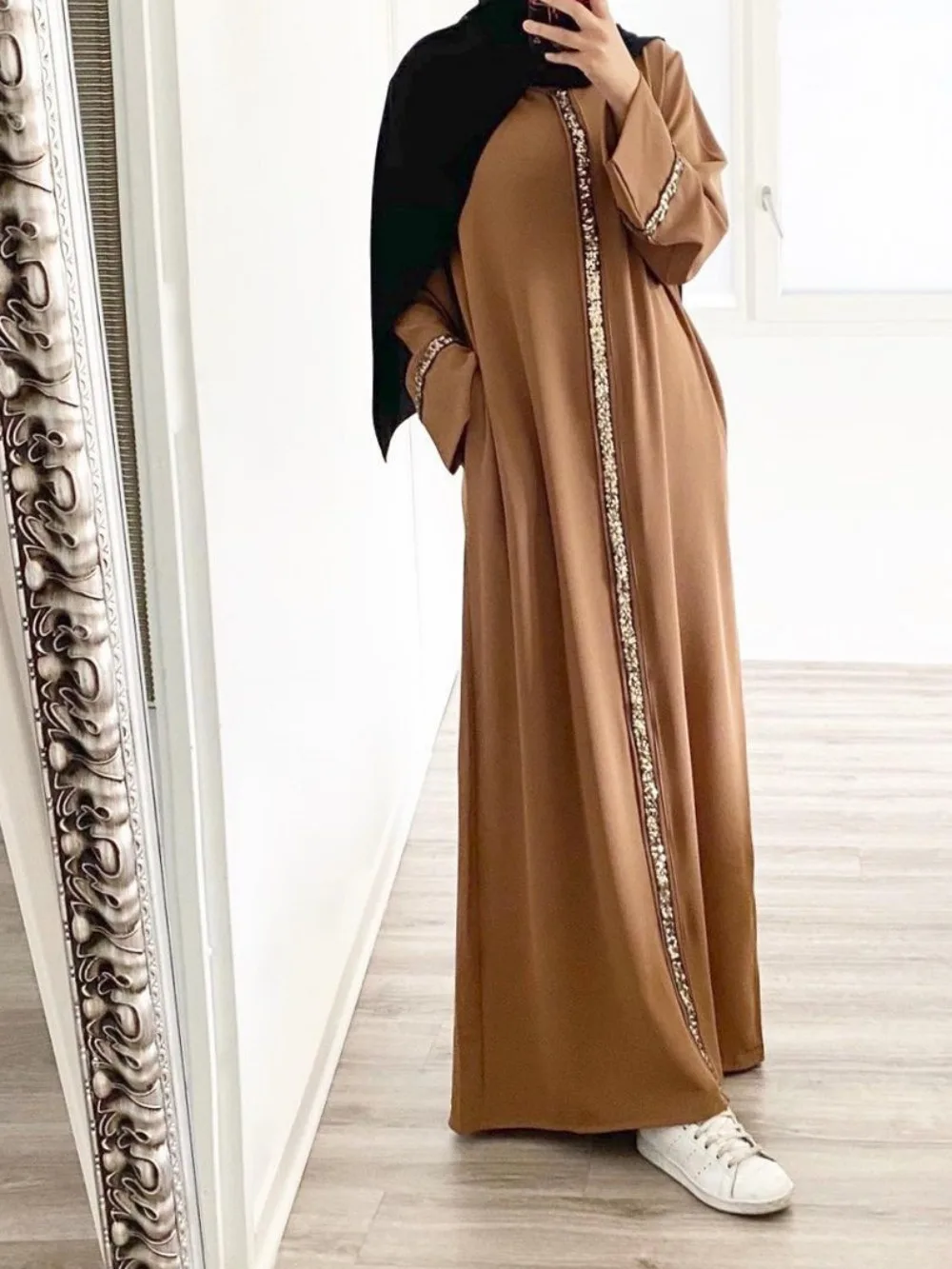 La matière douce et fluide de cette robe accompagne vos mouvements sans jamais vous contraindre. Grâce à son léger stretch, elle reste confortable durant toute la journée et permet de porter la djellaba femme moderne dans toutes les circonstances. De plus, sa conception astucieuse en fait un vêtement idéal pour chaque saison, capable de se superposer l’hiver tout en étant légère l’été.