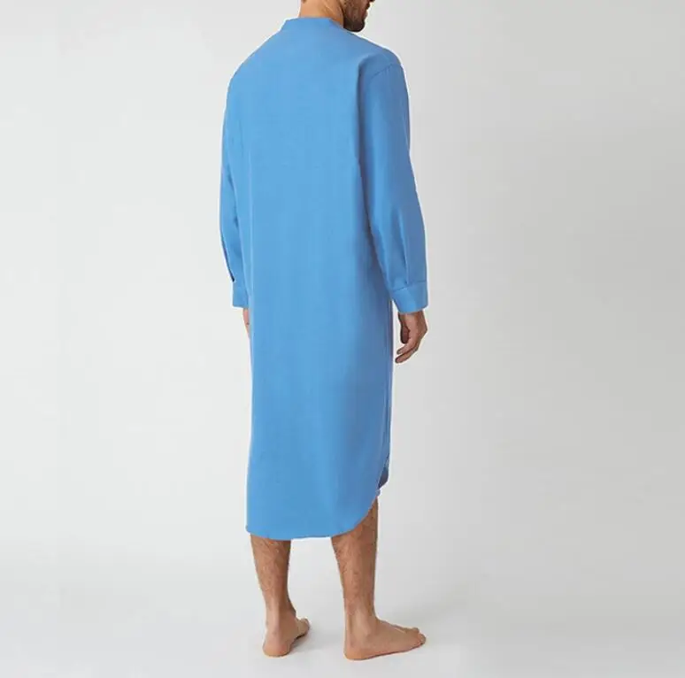 Djellaba Homme Bleue Unie – Chemise Longue En Lin Chic Islamique l’élégance sobre qui attire les regards