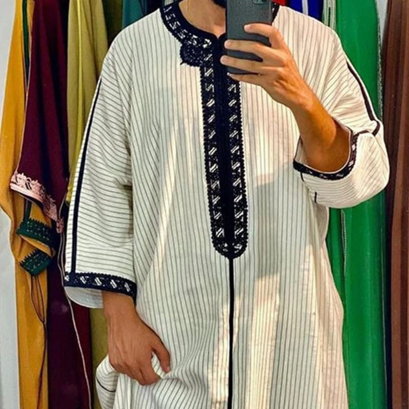 Polyvalent, ce qamis 4 saisons se porte facilement avec d’autres vêtements. Vous pouvez le porter seul pendant les journées chaudes ou le superposer durant les périodes plus fraîches, tout en préservant une allure élégante. Avec ses détails fonctionnels tels qu’une longueur équilibrée et des finitions soignées, il répond aux attentes des hommes modernes en quête de praticité.