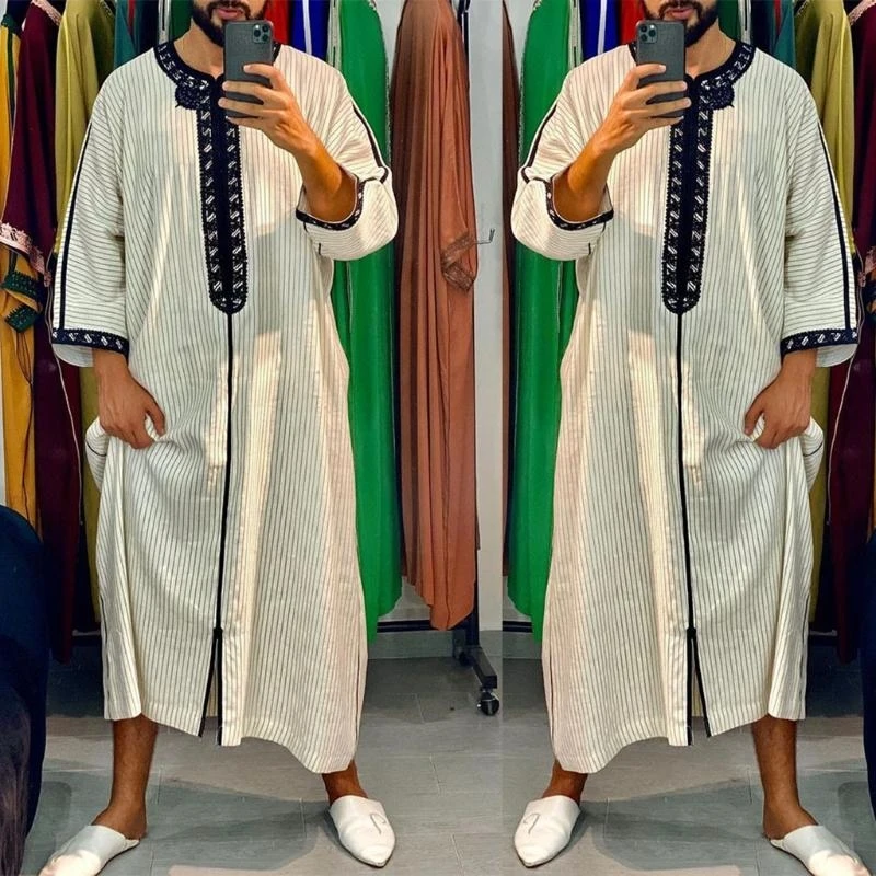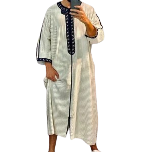 Assurez-vous d’associer votre thobe homme moderne avec des pièces clés, telles que des chaussures en cuir ou une veste légère, pour créer des tenues modulables et raffinées. « Composez votre look en un clin d’œil. » En intégrant ce jubba chic à votre rotation hebdomadaire, vous affirmerez votre présence avec élégance et assurance, transformant chaque moment en une occasion de briller.
