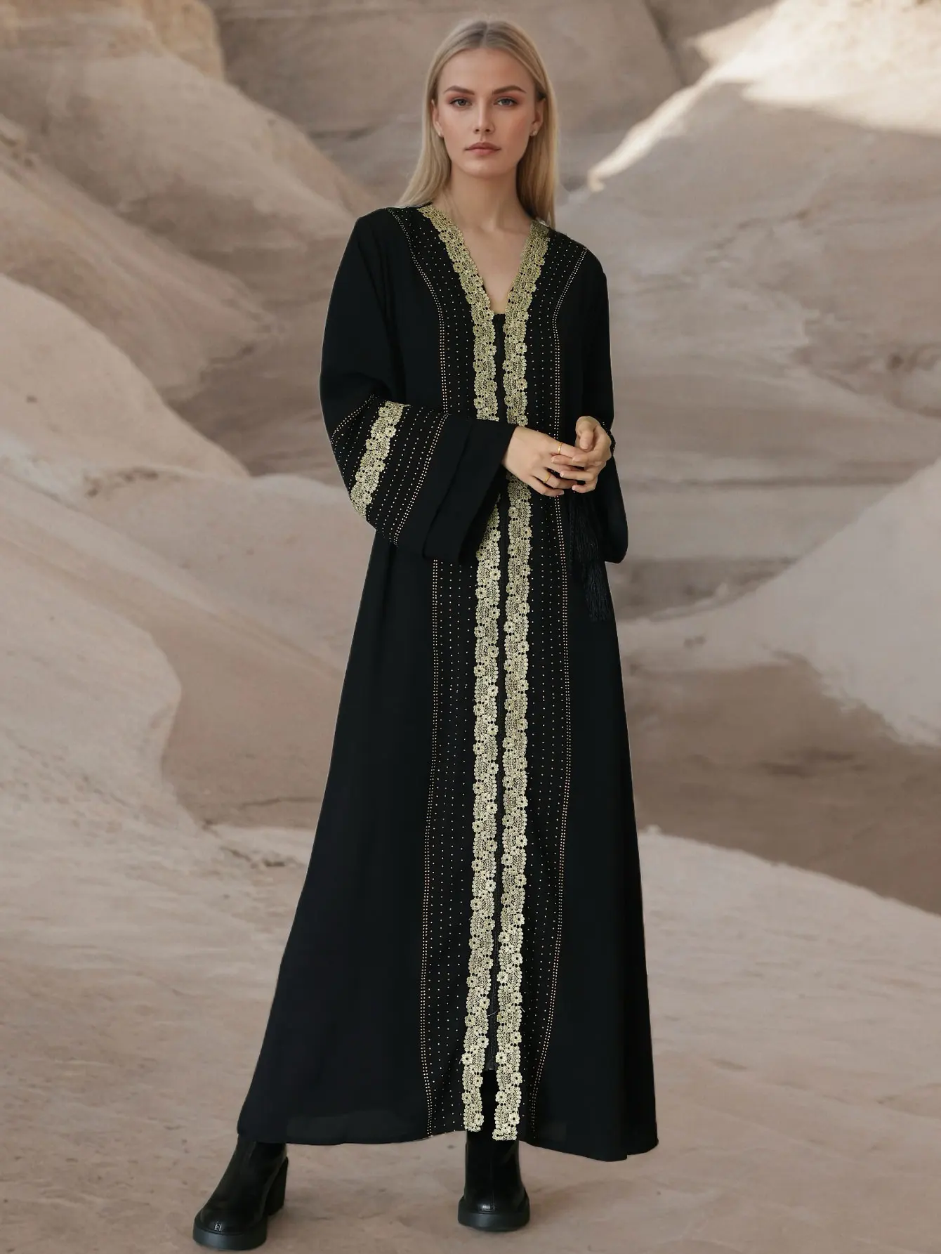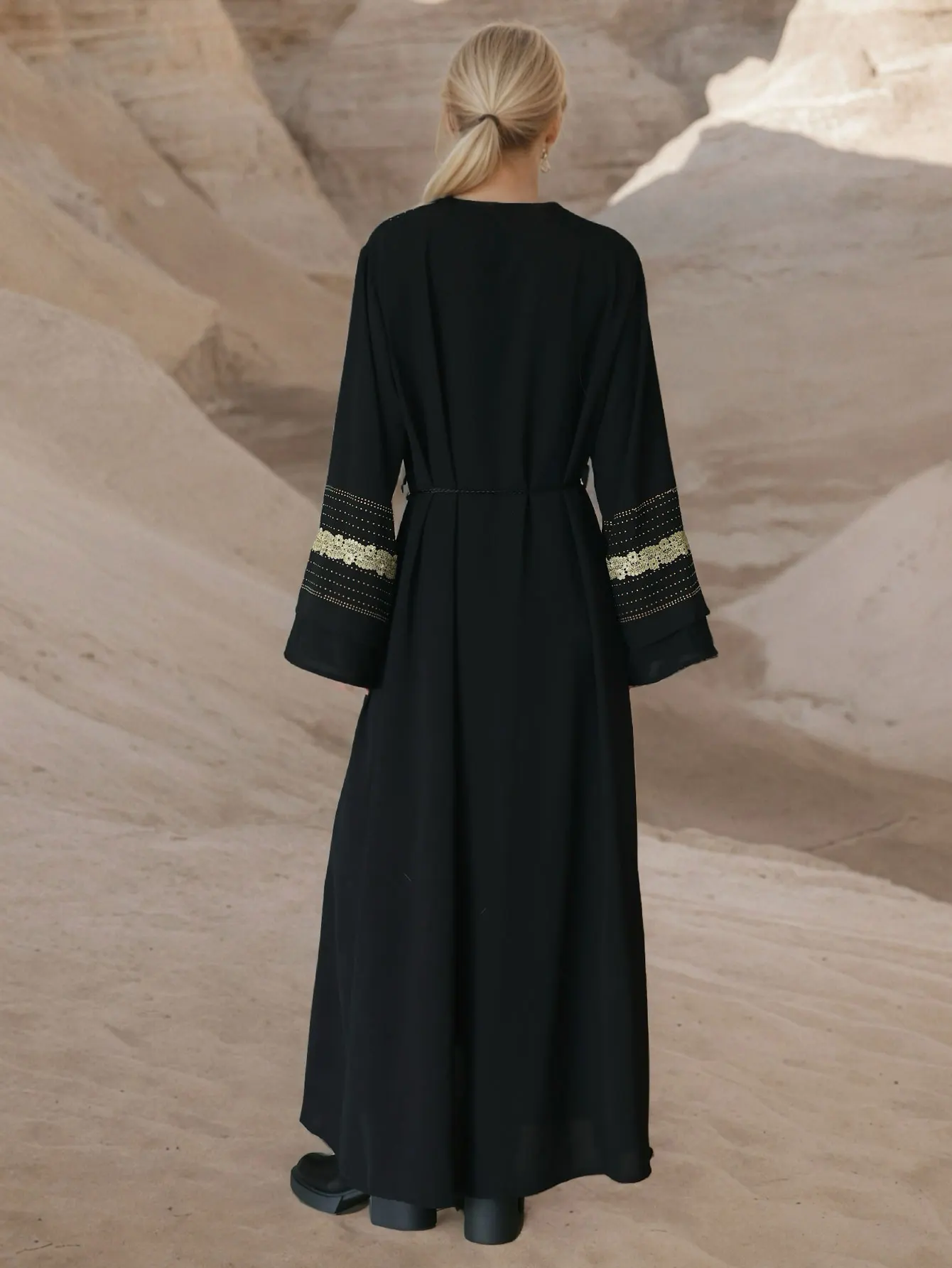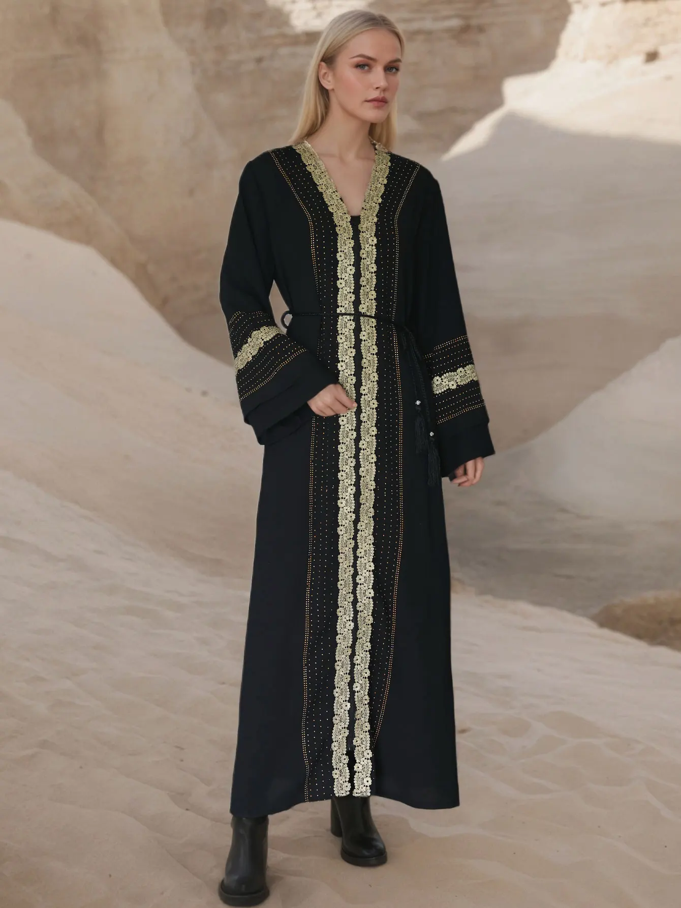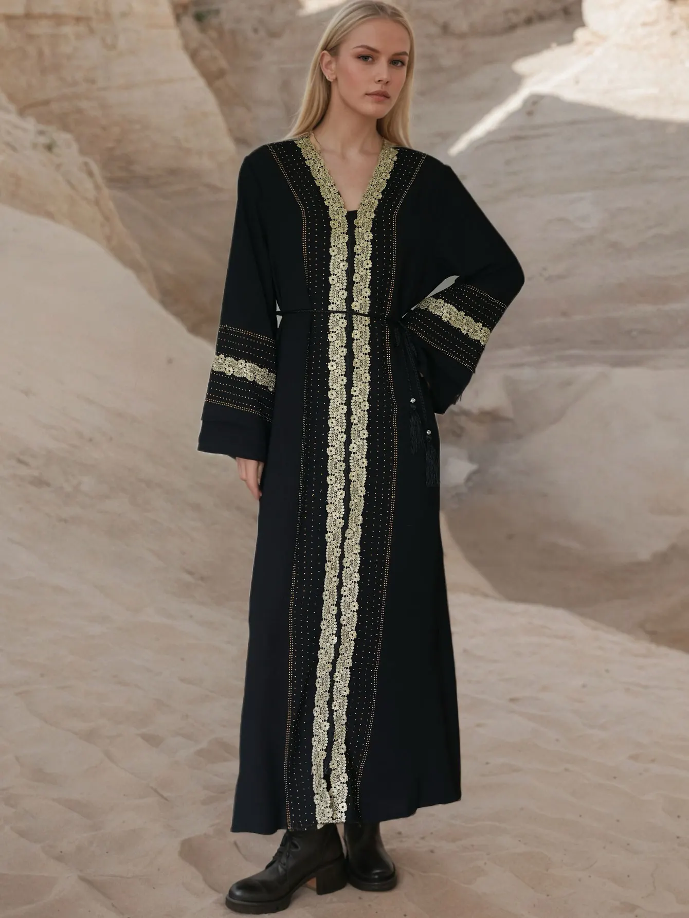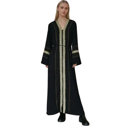 Pour les grandes occasions, les broderies de cette abaya captent la lumière et subliment votre présence. Son style inspiré de l’élégance orientale se marie aisément avec des accessoires tels que ceintures fines ou bijoux dorés, facilitant ainsi l’harmonisation avec votre hijab.