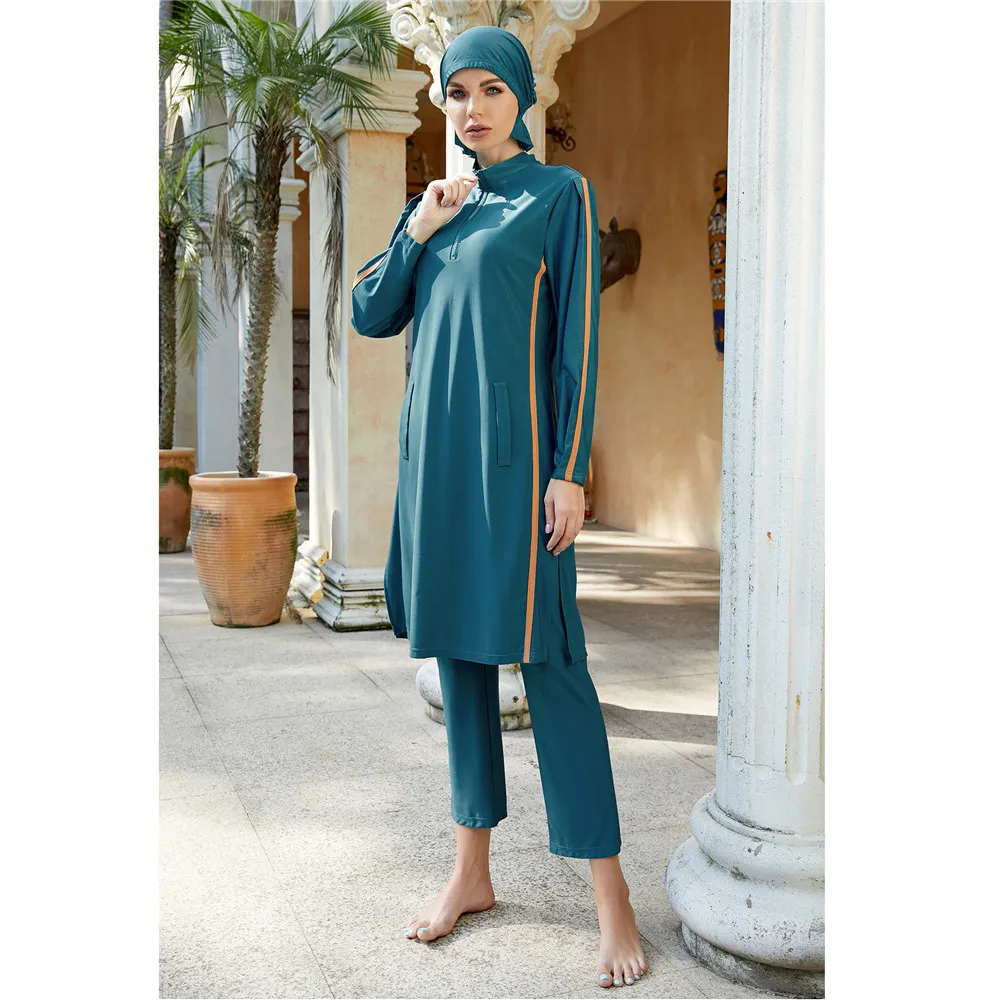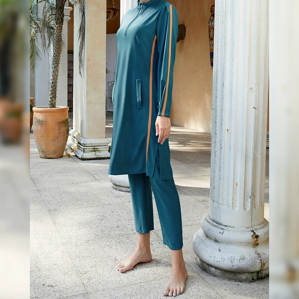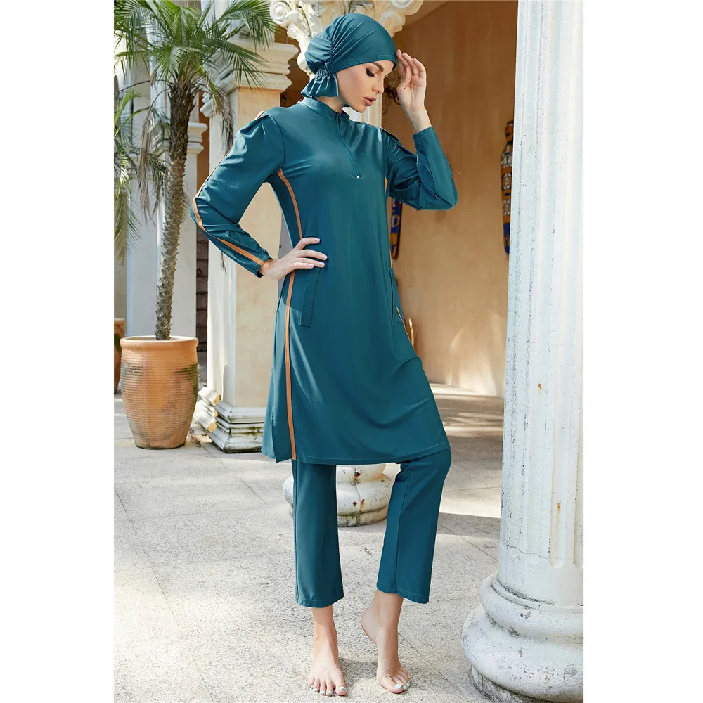 Découvrez le maillot de bain islamique femme, un ensemble 3 pièces alliant confort et élégance pour vos activités aquatiques.