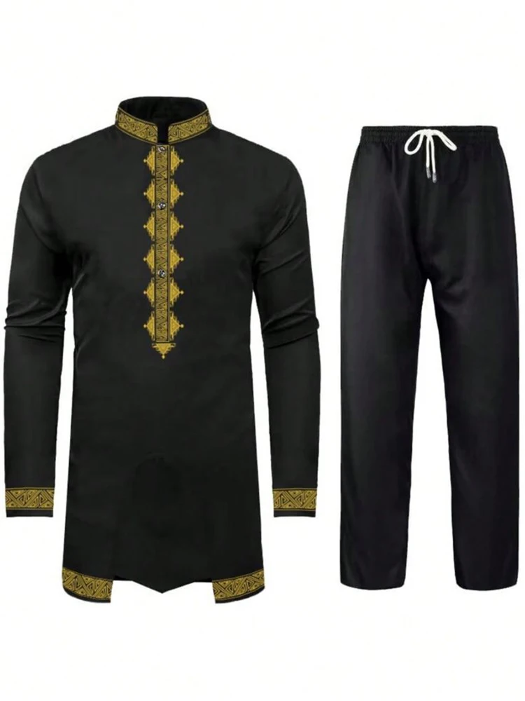 Passez à l’action et sélectionnez votre taille pour être le centre d’attention lors de vos événements. Réservez dès maintenant votre allure d’exception avec la tenue de cérémonie traditionnelle noire pour homme brodée en or de luxe. Ce choix audacieux marquera votre engagement vers un style raffiné et authentique.